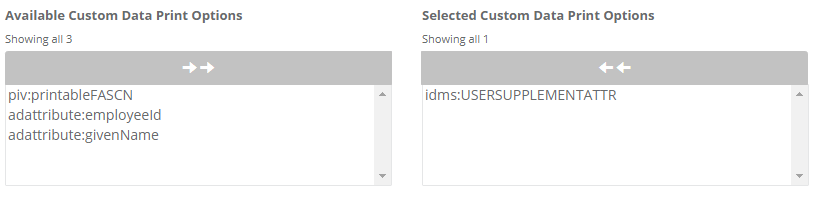 | 2 | In the "Available Custom Data Print Options", select the idms:USERSUPPLEMENTALATTR and update the policy |