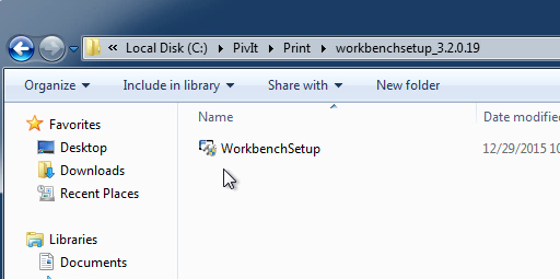 | 1 | Move to the Pivit\Print\workbenchsetup_3.2.0.19 folder. Run the WorkbenchSetup.msi |
