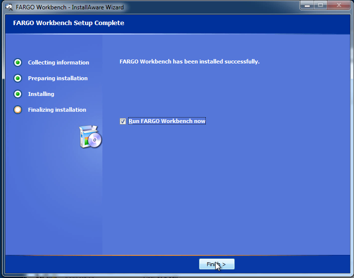 | 9 | Keep the "Run Fargo workbench now" checkbox check and press Finish. | ![]() |