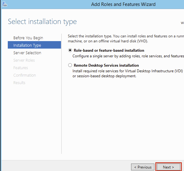 Select role based or feature based installation, click next.