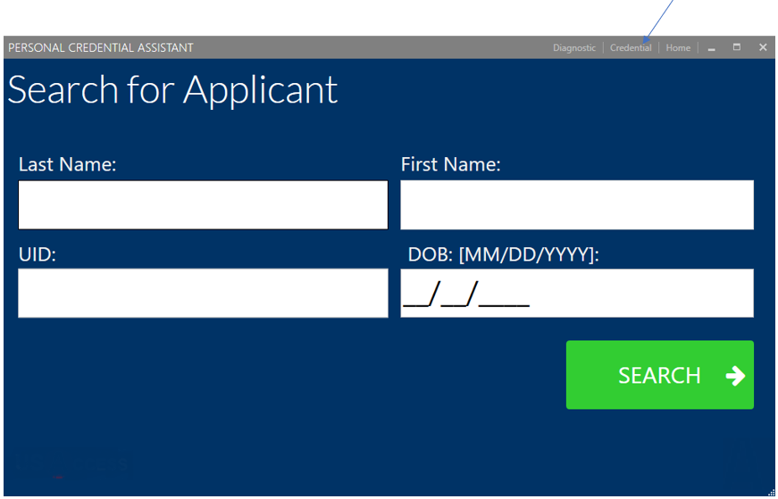 | 2 | When at the search screen, click the "credential" link at the top, right corner. |