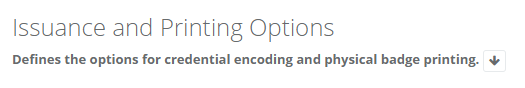 | 4 | Locate the Issuance and Printing Options and press the down arrow to reveal the additional configurations |